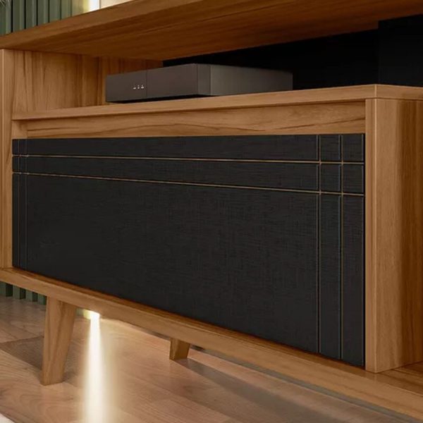 Seu tampo robusto de 25mm garante maior durabilidade e segurança para sua TV e objetos decorativos. Os frisos decorativos trazem um charme especial ao design, enquanto a porta com pistão a gás oferece abertura suave e moderna. Os pés em madeira maciça dão firmeza e estabilidade ao móvel, além de contribuírem para um visual sofisticado.