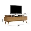 O tampo espaçoso comporta TVs de até 70 polegadas, e os pés em madeira maciça trazem firmeza e charme, deixando o móvel elevado e com um ar leve.