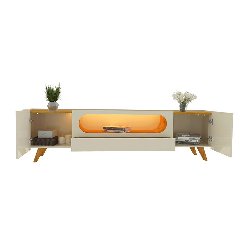 Rack Nobre Larg. 2,10m Off/Naturale c/ LED 100% MDF para TV até 70″ – Gelius