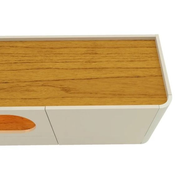 Conta ainda com gaveta com corrediça telescópica para um deslizamento suave, e portas com dobradiças Slow Motion, que proporcionam um fechamento leve e silencioso. Os pés em madeira maciça completam o visual, oferecendo estabilidade e um toque natural ao móvel.